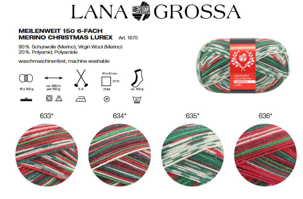 Produktinformationen "Meilenweit 6-FACH 150g Merino Christmas mit und ohne Lurex"