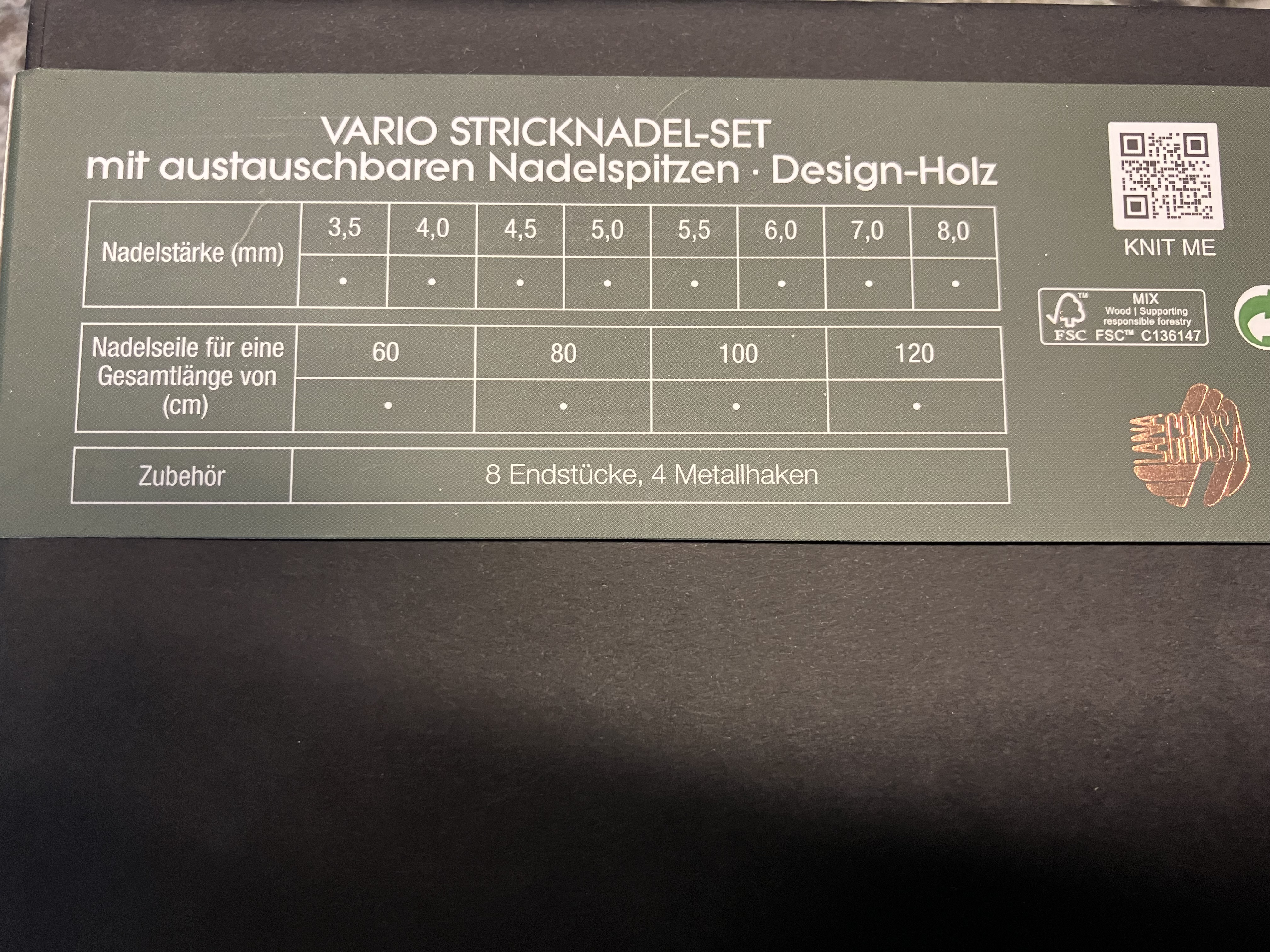 4 Nadelseile zur Erstellung folgender Längen: 60 / 80 / 100 / 120 cm