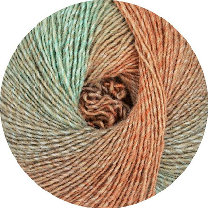 Langrapportgarn mit weichen langen Farbübergängen für leichte Gestricke, in 100g Aufmachung für langes knotenfreies Stricken und wenig Rapportunterbrechnungen, leicht zu stricken und gleichmäßige Maschen