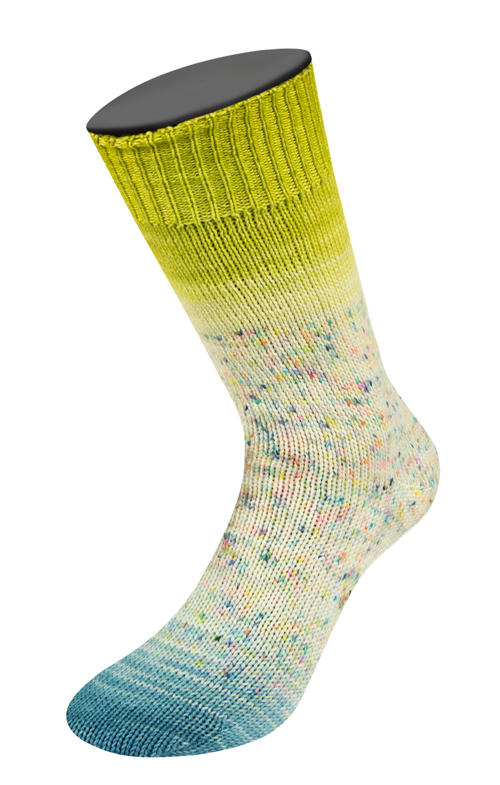 Extrafeines Merinogarn im klassischen hand-dyed Verfahren. Die abgebildeten Muster beziehen sich auf die Sockengröße 38/39. Bei veränderten Maschenzahlen kann das abgebildete Muster variieren.
