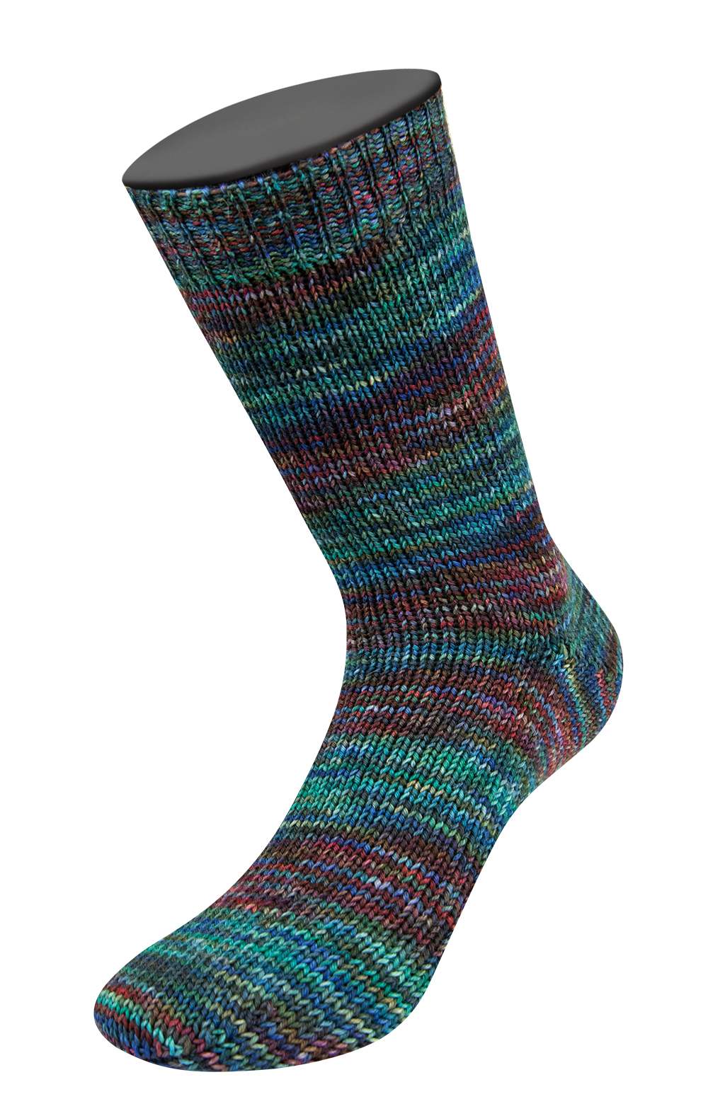 Extrafeines Merinogarn im klassischen hand-dyed Verfahren. Die abgebildeten Muster beziehen sich auf die Sockengröße 38/39. Bei veränderten Maschenzahlen kann das abgebildete Muster variieren.
