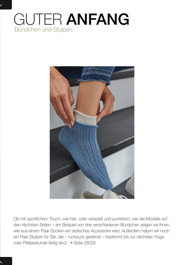 Neu im Heft: Meilenweit 100g Alpaca von Tanja Steinbach - für echte „Wohlfühl-Socken“! Das Garn überzeugt mit seiner Zusammensetzung von 70 % Alpaka und 30 % Polyamid. Die weiche Alpaka Faser bietet viel Wärme und ein angenehmes Tragegefühl auf der Haut. Und für dicke Socken gibt es das Garn auch in 6-facher Zwirnung! Unser Kuschelsockengarn ist im Wollprogramm bis 30 °C waschmaschinenfest. Tipp: Aus den beiden Garnstärken können auch andere Modelle, wie Tücher, Mützen, Schals, Pullover,… entstehen!
