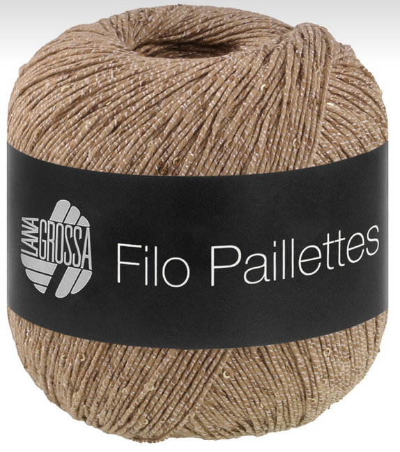 Hochwertige Baumwollfäden werden, zusammen mit einem Faden winziger Pailletten, zu einem dünnen Garn gedreht. Ton-in-Ton gefärbt, setzen sie dezent schimmernde Glanzpunkte.