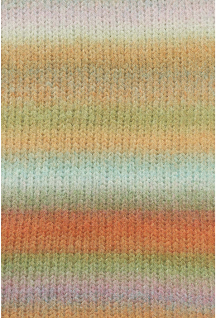 Das grosszügige Knäuel erinnert an eine luftige Wolke aus extrafeinem Merino und dank Nadelstärke 6-7 mm, fliegt es über die Nadeln wie eine Sternschnuppe über den Nachthimmel. Vergessen Sie nicht, sich was zu wünschen!