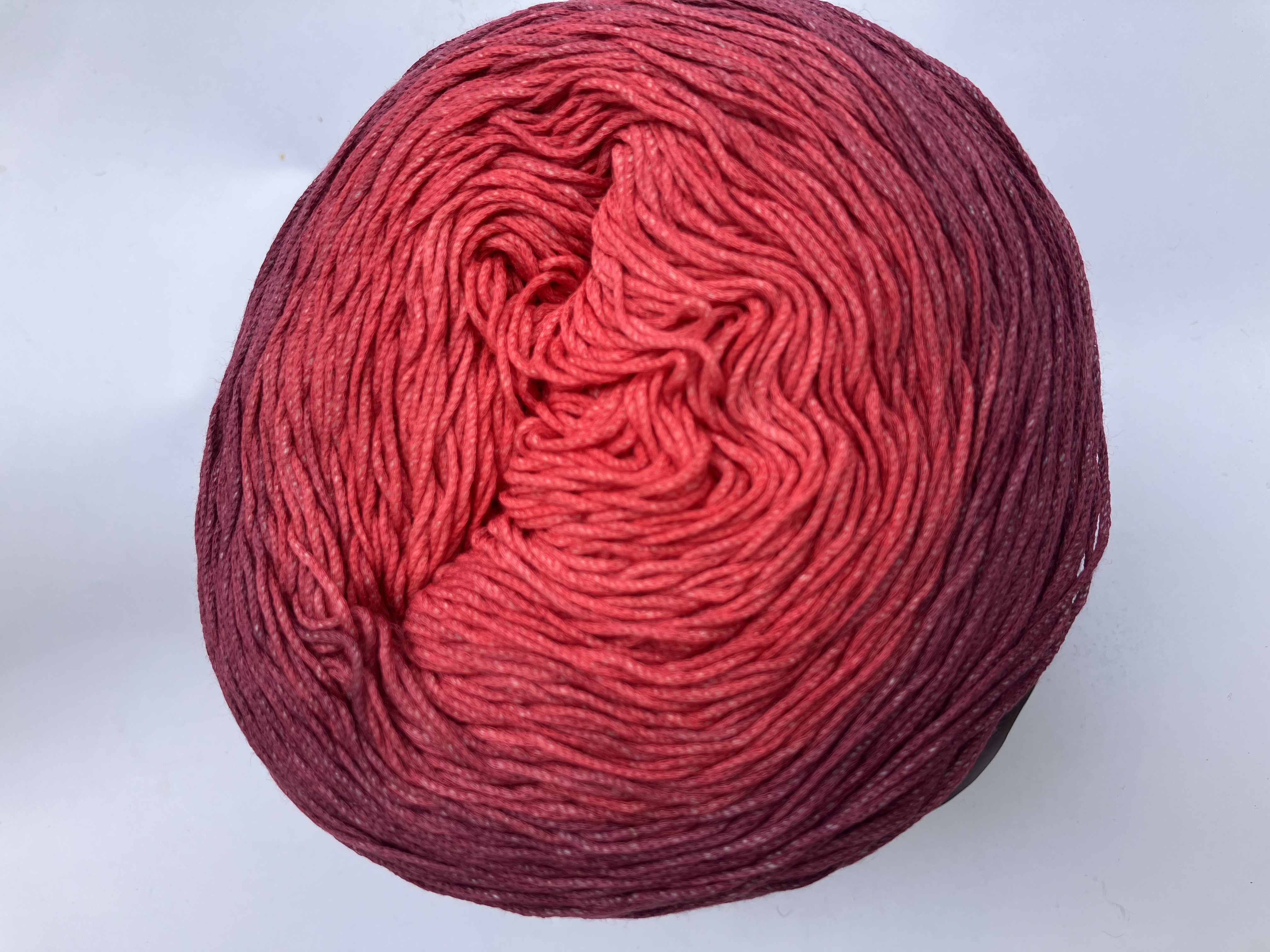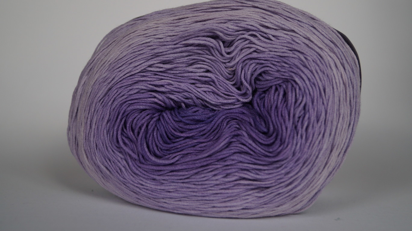 hochwertige Mako-Baumwolle wird zu einem leichten Maschengarn verstrickt. Das Garn wird dégradé gefärbt und ergibt verstrickt attraktive Farbverläufe.